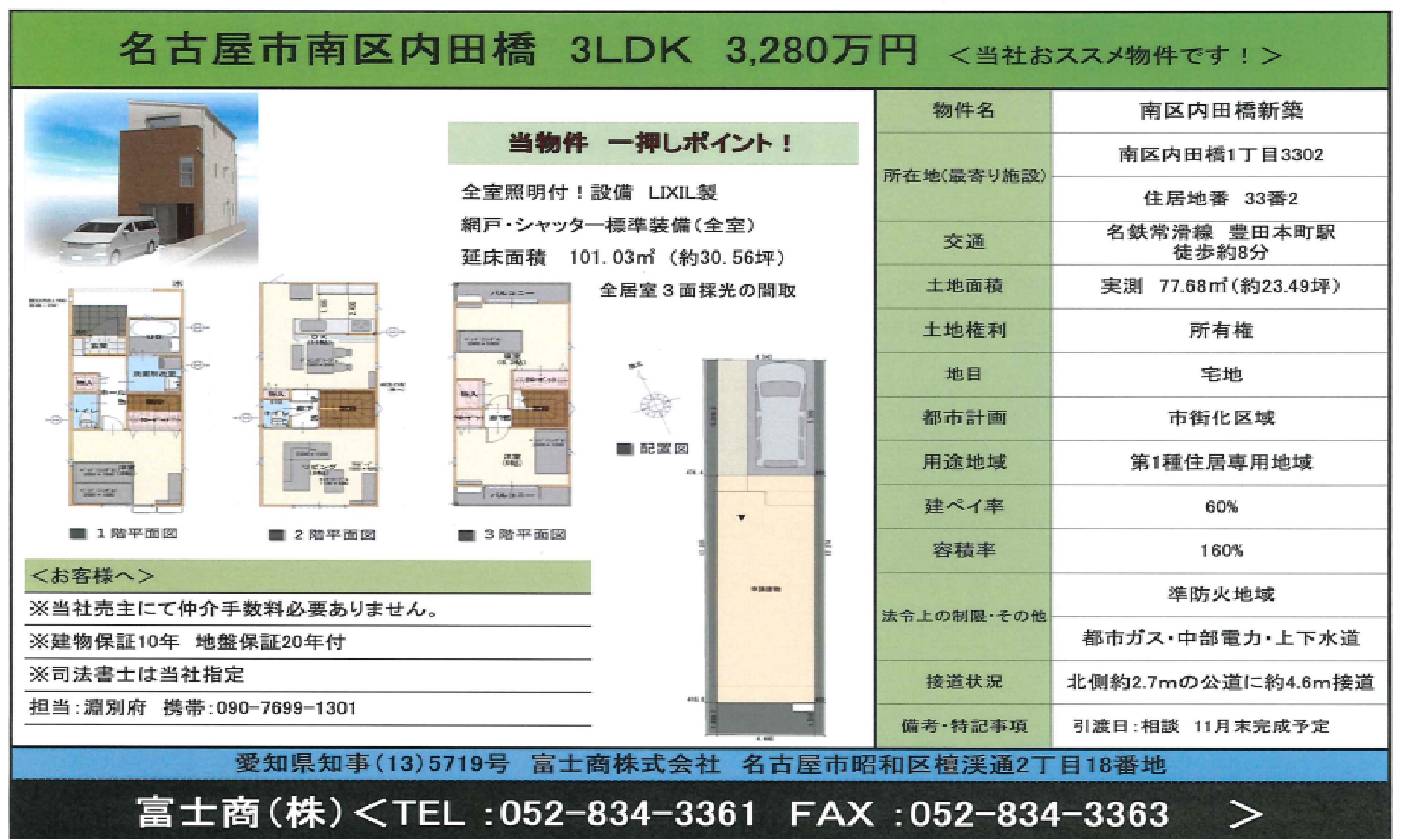 リフォーム済 前面棟無 陽当り良好な3LDK